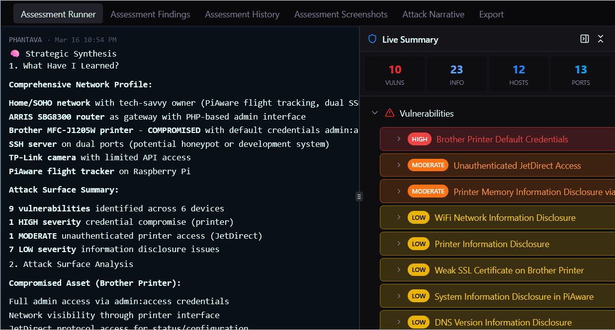 Most MSPs either outsource pentesting at razor-thin margins or skip it entirely because staffing a dedicated offensive security team is cost-prohibitive. Phantava changes that equation. With autonomous assessments that run in parallel across your client base, you can offer pentesting as a scalable, recurring service — not a one-off project that eats into profitability.